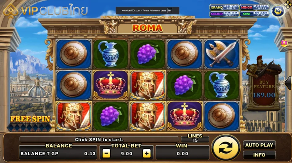 ROMA เป็นเกมสล็อตธีมอาณาจักรโรมันโบราณ ที่เน้นกลไกการชนะแบบต่อเนื่อง และมีฟีเจอร์โบนัสที่น่าตื่นเต้น เกมมี 15 เพย์ไลน์ ที่กำหนดไว้ตายตัว RTP สูงถึง 97% ซึ่งถือว่าสูงมากเมื่อเทียบกับเกมสล็อตออนไลน์ทั่วไป มีแนวโน้มที่จะจ่ายรางวัลเล็ก ๆ บ่อยครั้ง ทำให้ผู้เล่นสามารถรักษายอดเงินได้ดี เหมาะกับการเล่นเพื่อทำยอดเทิร์นให้ถึง และในขณะเดียวกันก็ได้ลุ้นเกมโบนัสและแจ็คพอตไปด้วย
